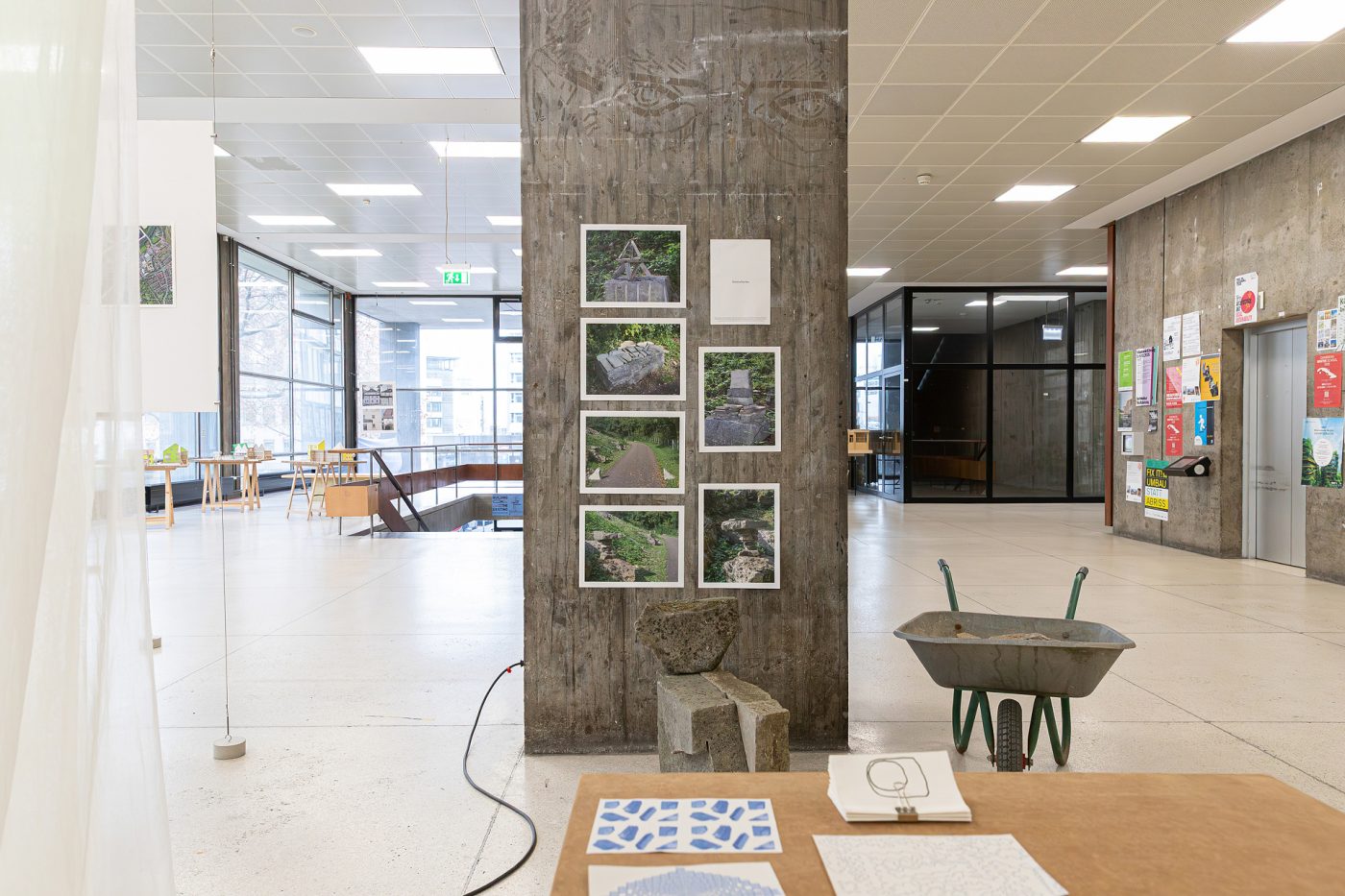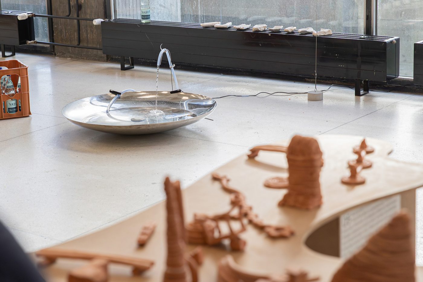 Die Ausstellung übersetzt diese Erkenntnisse in sinnliche Fragmente: Steinschreine, Tonobjekte, Fotografien, Videos und ein Skript machen das Prozesshafte, Unfertige und Überlagerte des Ortes erfahrbar. Eine Brunneninstallation bringt das Elementare und die sozialen Rituale des Wasserholens in den Raum. Zudem habe ich andere eingeladen, den Ort selbst zu durchlaufen und zu dokumentieren; ihre Beiträge erweitern die Perspektive und machen spürbar, dass der kleinste Eingriff nicht im Raum beginnt, sondern in der Wahrnehmung.