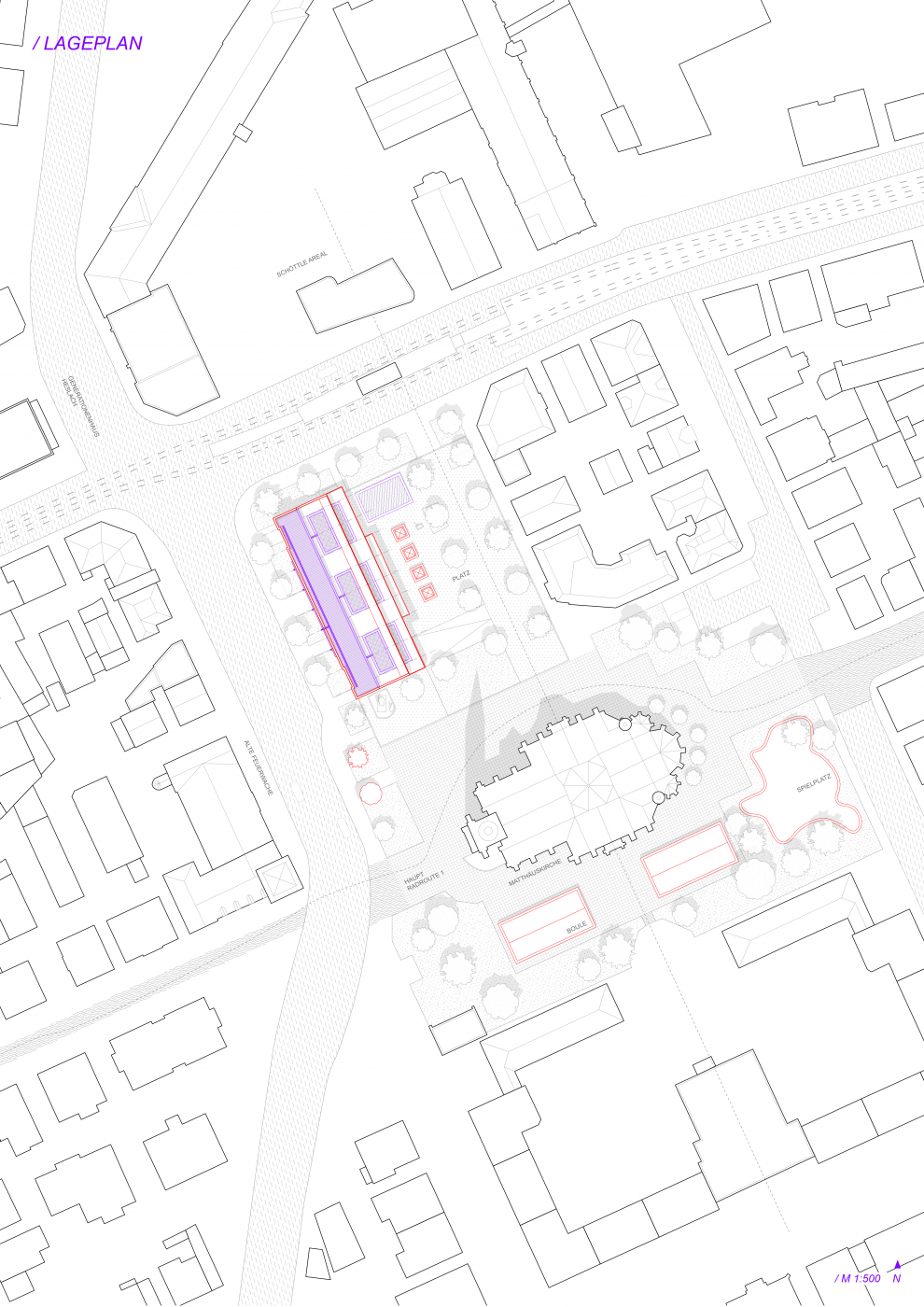 Die Gliederung und die differente Gestaltung der öffentlichen Bereiche, Höfe und Gebäude soll durch die Aneignung der Benutzer entstehen und in ihrer Vielfalt ein nachbarschaftliches Netzwerk abbilden.