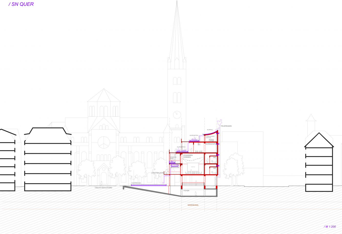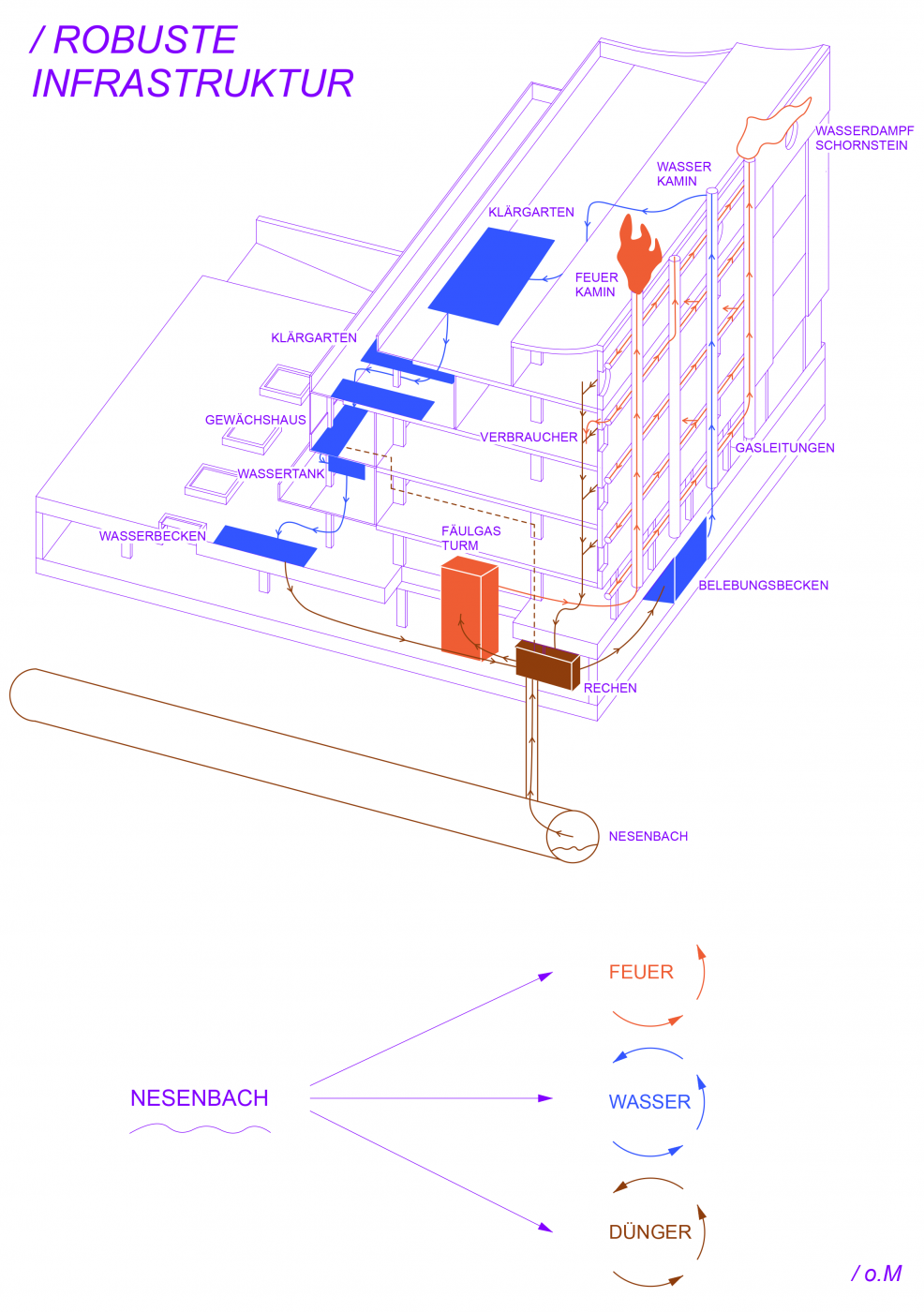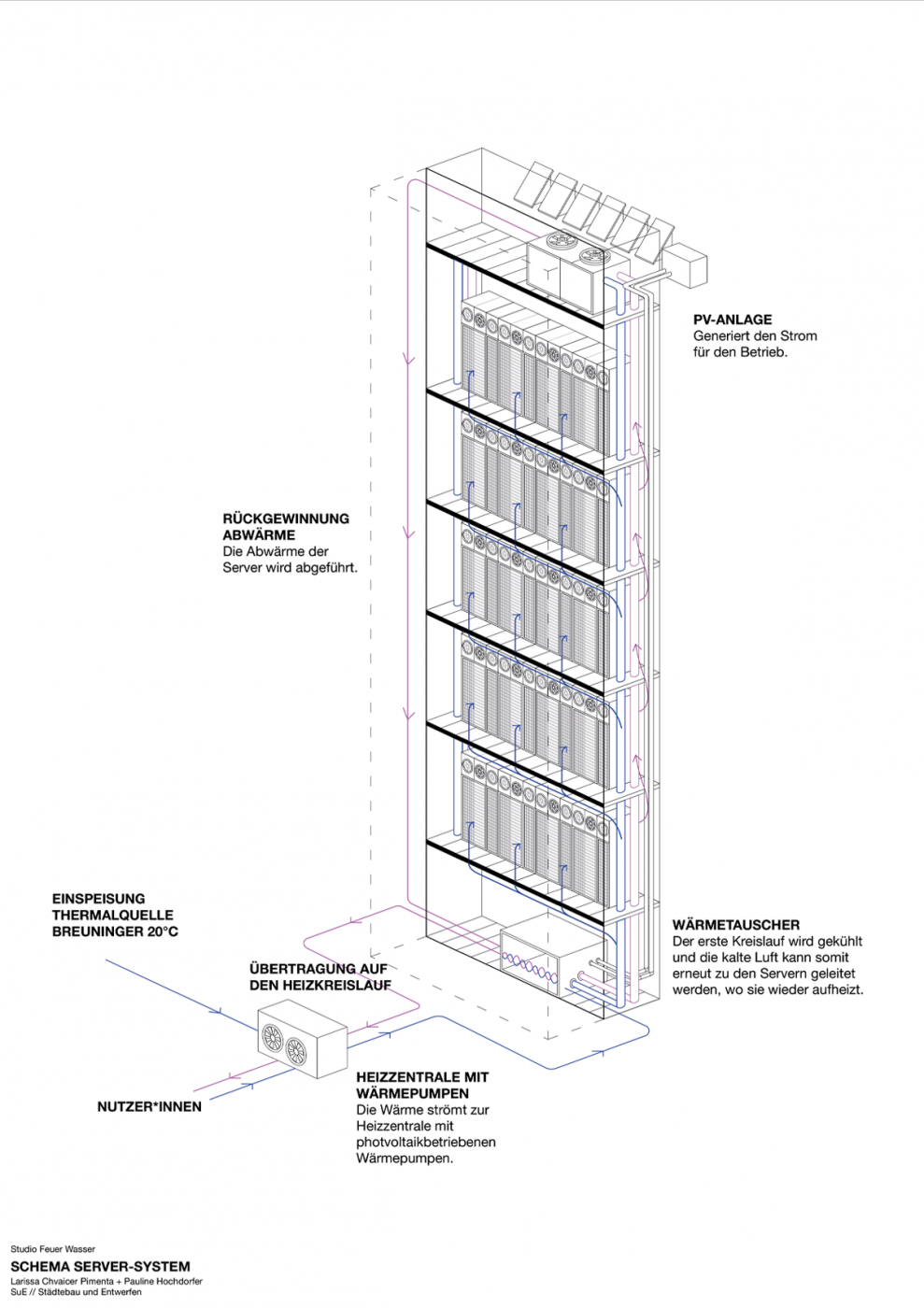 Ziel des Entwurfs ist es, diese unterschiedlichen Systeme als integralen Bestandteil des urbanen Alltags erfahrbar zu machen. Technische Infrastruktur wird räumliche und soziale Infrastruktur und eröffnet Räume des Austauschs, der Fürsorge und der kollektiven Aneignung.