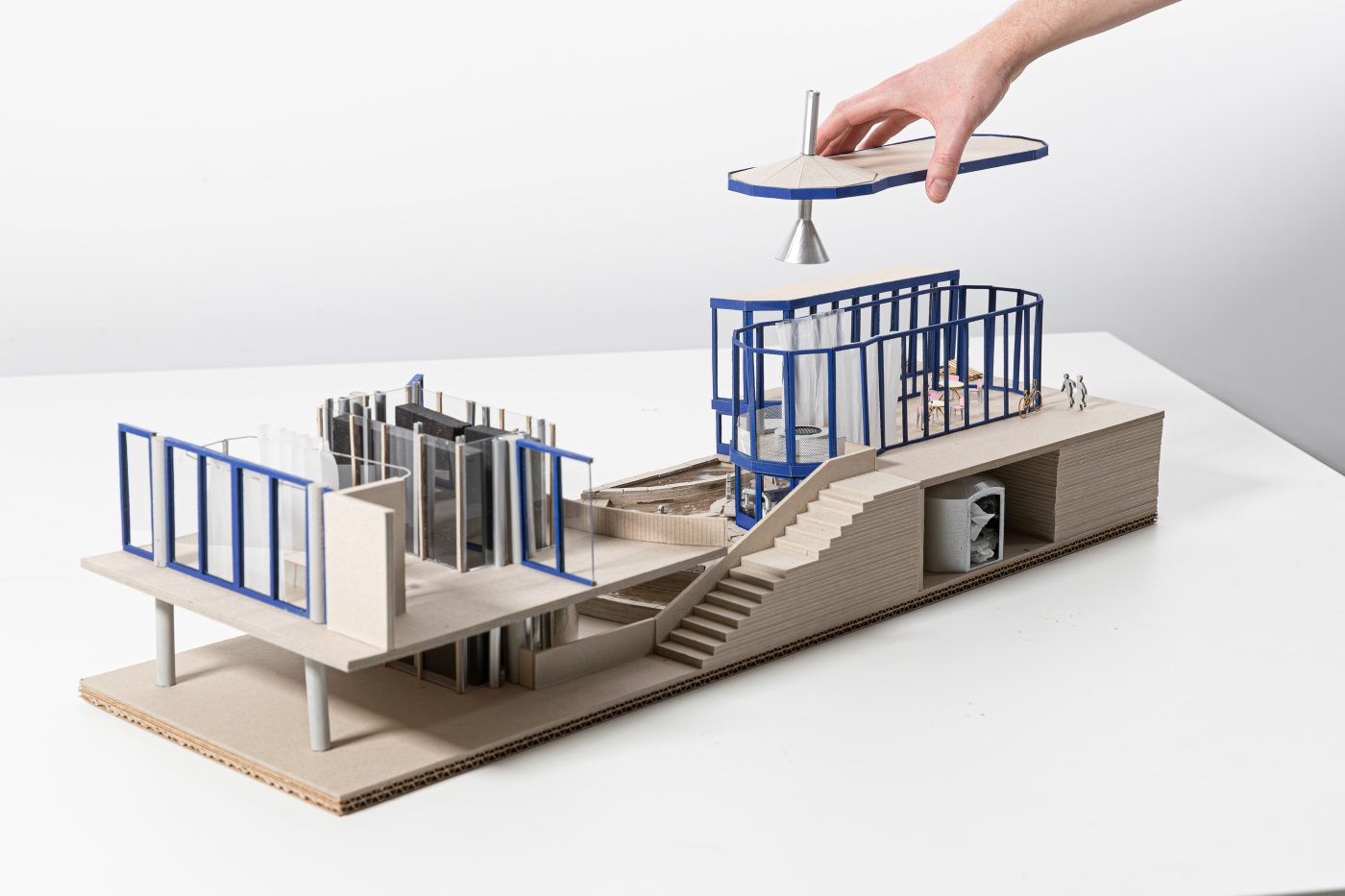 Um das ROTAG-Areal als Begegnungsort für die breite Öffentlichkeit zu etablieren, greift das Konzept das Thema „Essen“ als verbindendes und gemeinschaftsförderndes Element auf: In der Shedhalle wird die Herstellung und der Vertrieb von Lebensmitteln ermöglicht, während die Direktorenvilla im Erdgeschoss eine kooperative Gastronomie integriert, die durch eine vertikal ausgerichtete Küchenstruktur ergänzt wird. Die oberen Geschosse bieten Raum für administrative Funktionen sowie flexible Unterkünfte, die besonders für externe Projektbeteiligte konzipiert sind, um vor Ort an ihren Vorhaben arbeiten zu können.