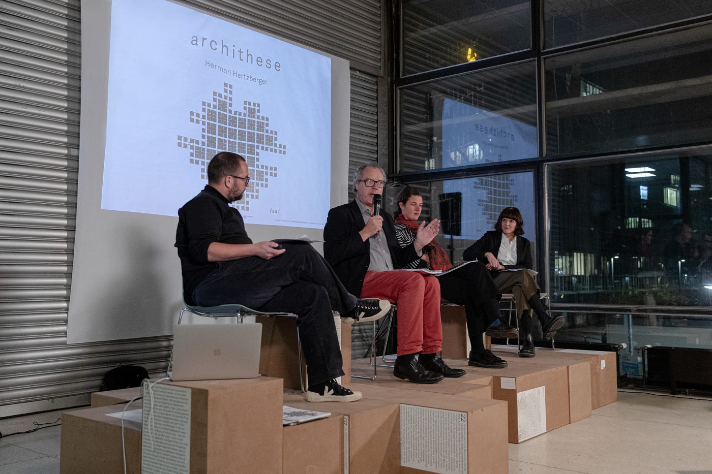 DiskussionProf. Dr. Martina Baum und Vertr.-Prof. Markus Vogl sprachen am 28.11.2023 im Foyer des K1 der Universität Stuttgart mit Hubertus Adam und Nele Rickmann von der archithese über den Architekten Herman Hertzberger. Sein Werk beeinflusst bis heute Genrationen von Architekt*innen und Stadtplaner*innen. Die generalistische Perspektive von Herman Hertzberger auf Stadt und Architektur als ein verbindendes räumliches Element ist eine der Grundlagen des Lehrstuhls. Die Ausgabe 3 2023 der archithese widmet sich dem Werk von Herman Hertzberger und ist in einer engen Kooperation des Lehrstuhls und der Redaktion der archithese entstanden.